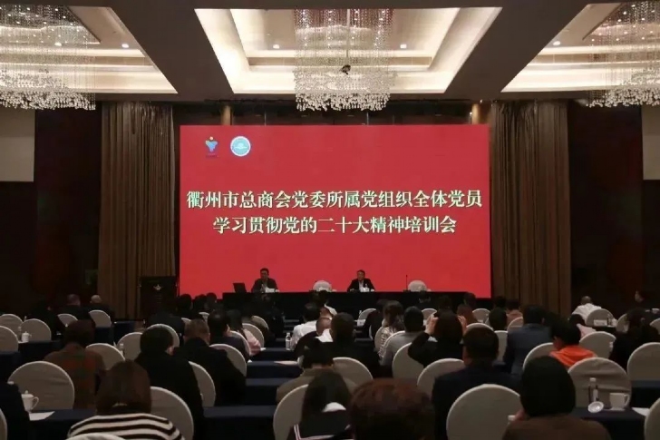 2023年3月10日,衢州市总商会党委所属党组织全体党员学习贯彻党的二十大精神培训会召开。市委统战部副部长、市工商联党组书记、市总商会党委书记陈水清同志出席会议并讲话,市工商联党组成员、副主席、市总商会党委副书记吴冠华同志主持会议,市总商会党委委员和市总商会党委所属各党组织党员、群众代表等150余人参加会议。